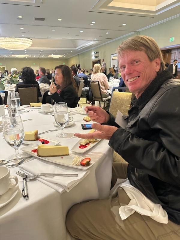 Dinner typically runs about $150—$160 if you’re not a member of the Association of California Water Agencies (ACWA, but that’s another great story). For that price, you get a nicely plated serving of high‑end airline food, a slice of cheesecake for dessert, and an endless supply of State Water Project water at no extra charge—unless you count the $150 infrastructure fee you already paid.